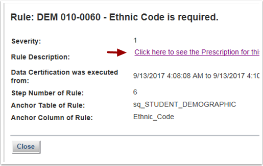 Prescriptions (or solutions) can be stored in Elevate Data Quality. These tell the user how to resolve errors in the SIS (Student Information System).