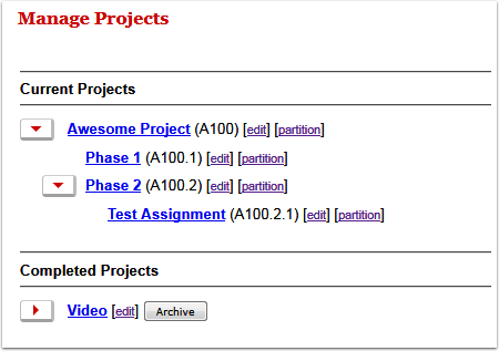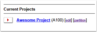 You are taken back to the Manage Projects screen. From here you can edit the project using the “edit” link next to the project, or you can partition the project using the “partition” link, which allows you to break the project into parts.