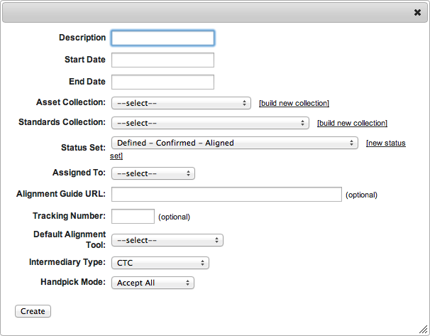 - Standards Collection – Group of standards that are being aligned in this project (select an existing collection or build a new collection).
