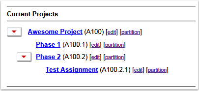 Click the red arrow button to review the partitions of that project and edit or add partitions to any of them.