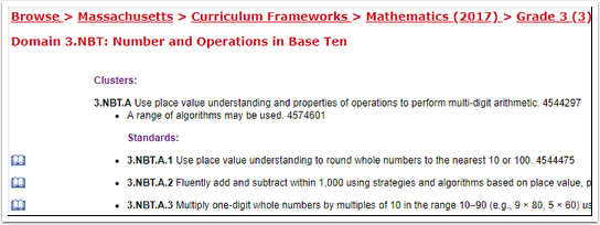 Clicking on the Blue Book for 3.NBT.A.1 in the image above gives you: