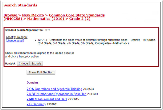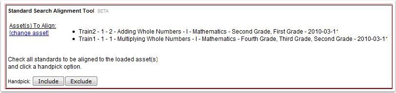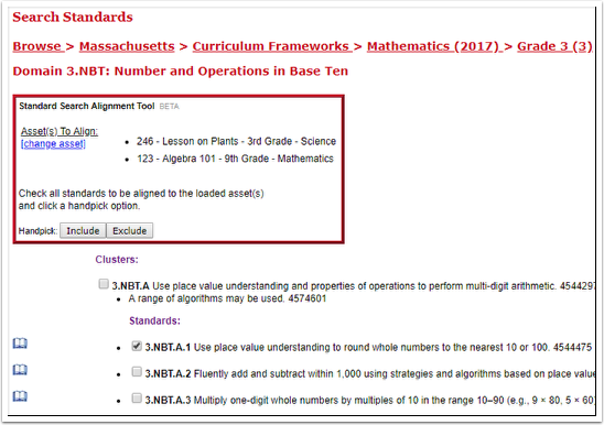 8. To directly align a standard to your asset, click the box of the standard you want and then click the Handpick: Include button.