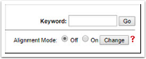 - The alignment mode will be off if you enter the page using a keyword search. To turn the alignment mode on, move the radio button to “on” and click Change. The screen re-configures.