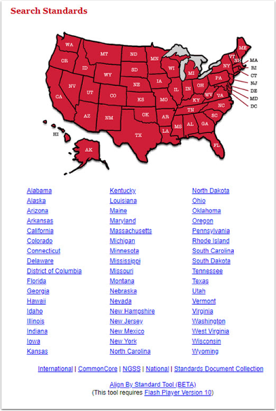 The Search Standards page appears. You see a map of the states, similar to this: