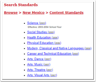 - Select a state and a standards document.