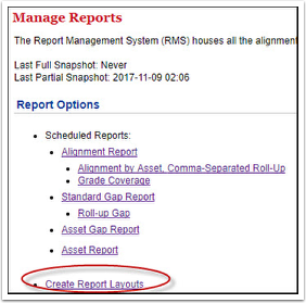 - Click the link for Create Report Layouts.