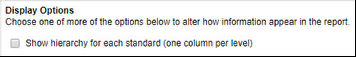 "Show hierarchy of each standard (one column per level)" - Check this if you want to show the hierarchy for each standard. This option generates one column for each level in the hierarchy of the reported standard. If the standard is in the fourth level of the document, there will be four columns, one for each level. See example below.