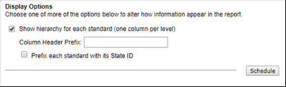 - You can choose to "prefix each standard with its State ID." If the check box is unchecked, the State ID appears only in the State ID column of the report. If the check box is checked, the State ID appears in front of the text at each standard level.
