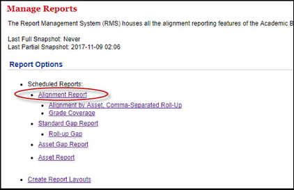 Note: You can also create an alignment report by Asset or a Grade Coverage Report which shows the number of aligned resources for a given set of state standards.