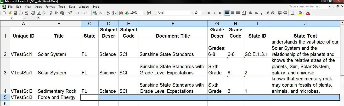 You can choose to prefix each standard with its State ID. Without prefixing, the State ID appears only in the labeled column: