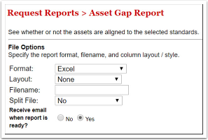 3. On the Request Reports > Asset Gap Report page, set your File Options.