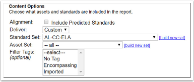 4. Set your Content Options. Decide if you want the report to include predicted standard alignments or any rejected standard alignments.