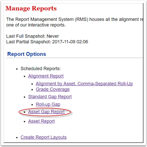 2. Click the Asset Gap Report link. (As an alternative, you can choose Reports > Request Reports > Asset Gap Report.)