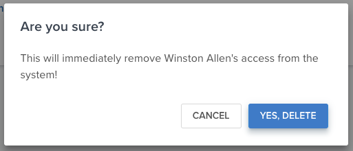 As a reminder, if you remove someone from the system it will immediately remove all access.