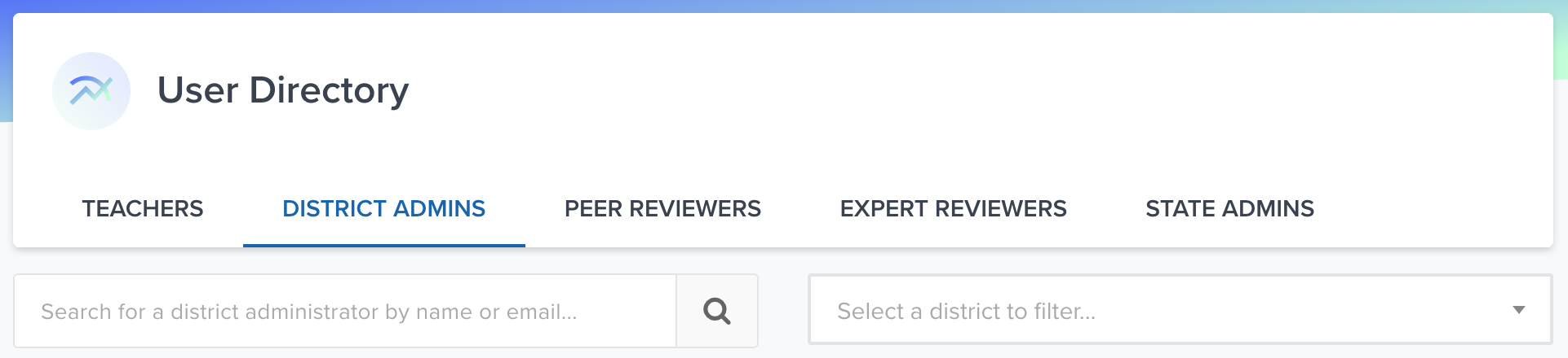 As a State Administrator, you will be able to see a list of all District Administrators and search it using the search bar at the top.