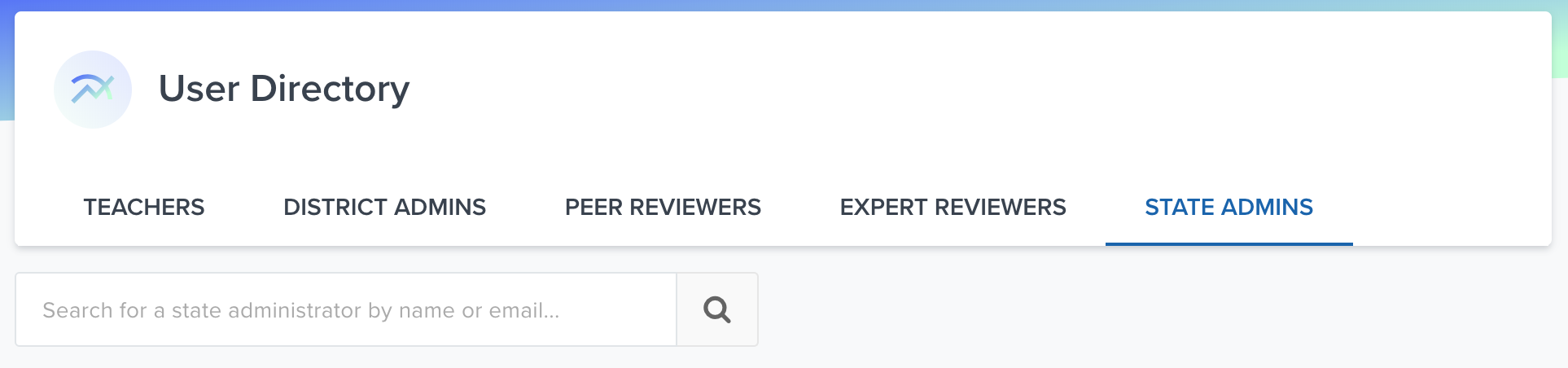 As a State Administrator, you will be able to see a list of all other State Administrators. You can search the list using the search bar at the top.