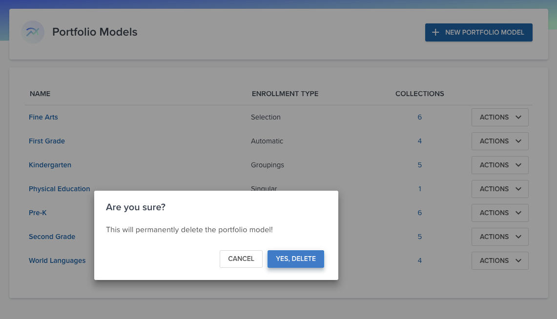 If you select 'Delete portfolio model,' be sure you actually want to remove the model. You will see a warning message to confirm.