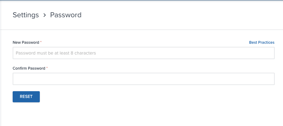 To update your password, select 'Password' on the left navigation bar. You will then see a field to enter a new password and confirm the password.
