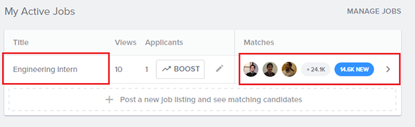 When you log intoTalentMatch, you will see the dashboard which provides a high level view of everything you can do to recruit on Portfolium.