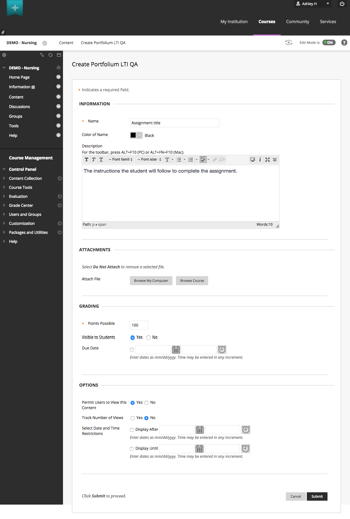 The EDU Platform requires you to enter the following fields to create your assignment.