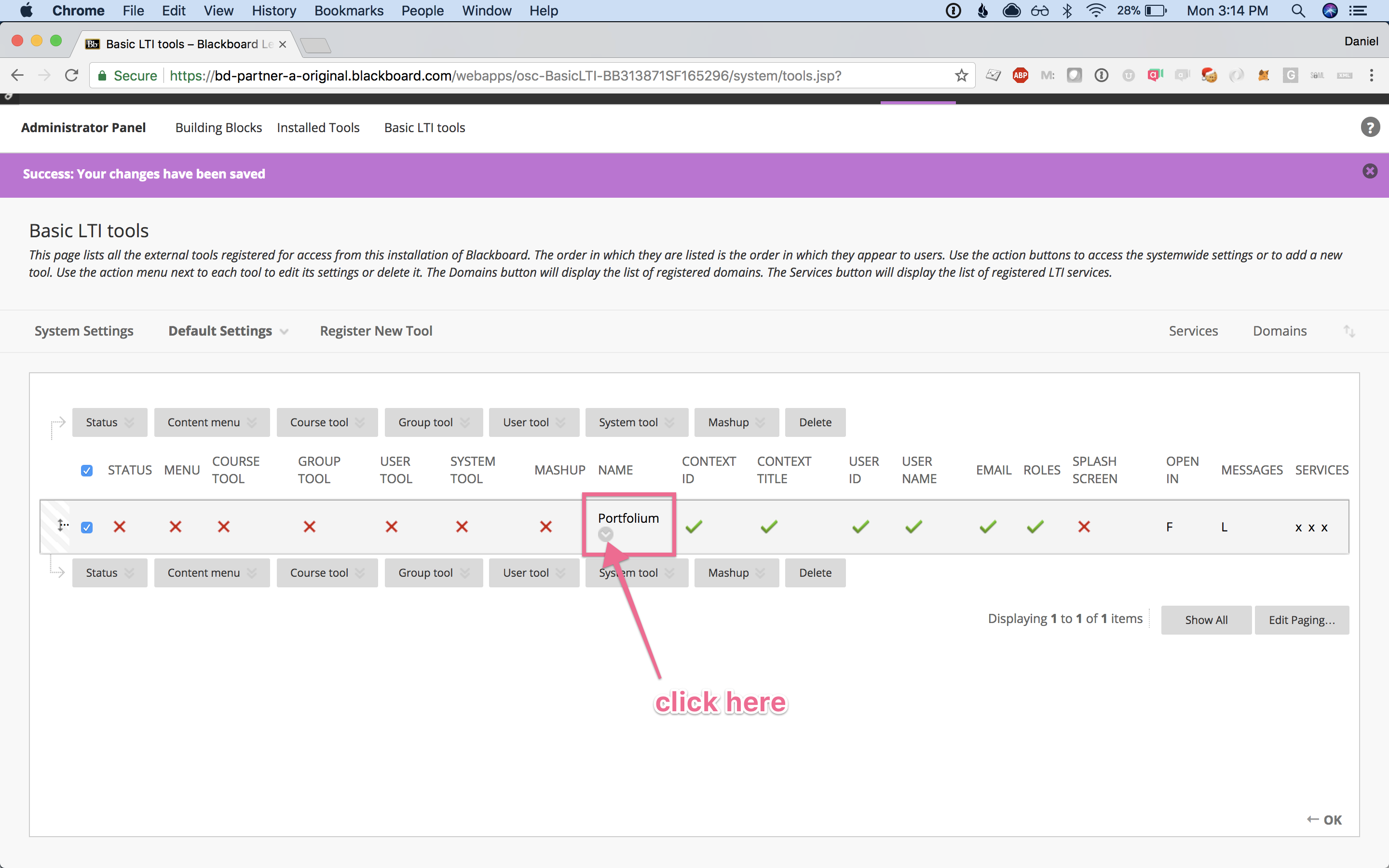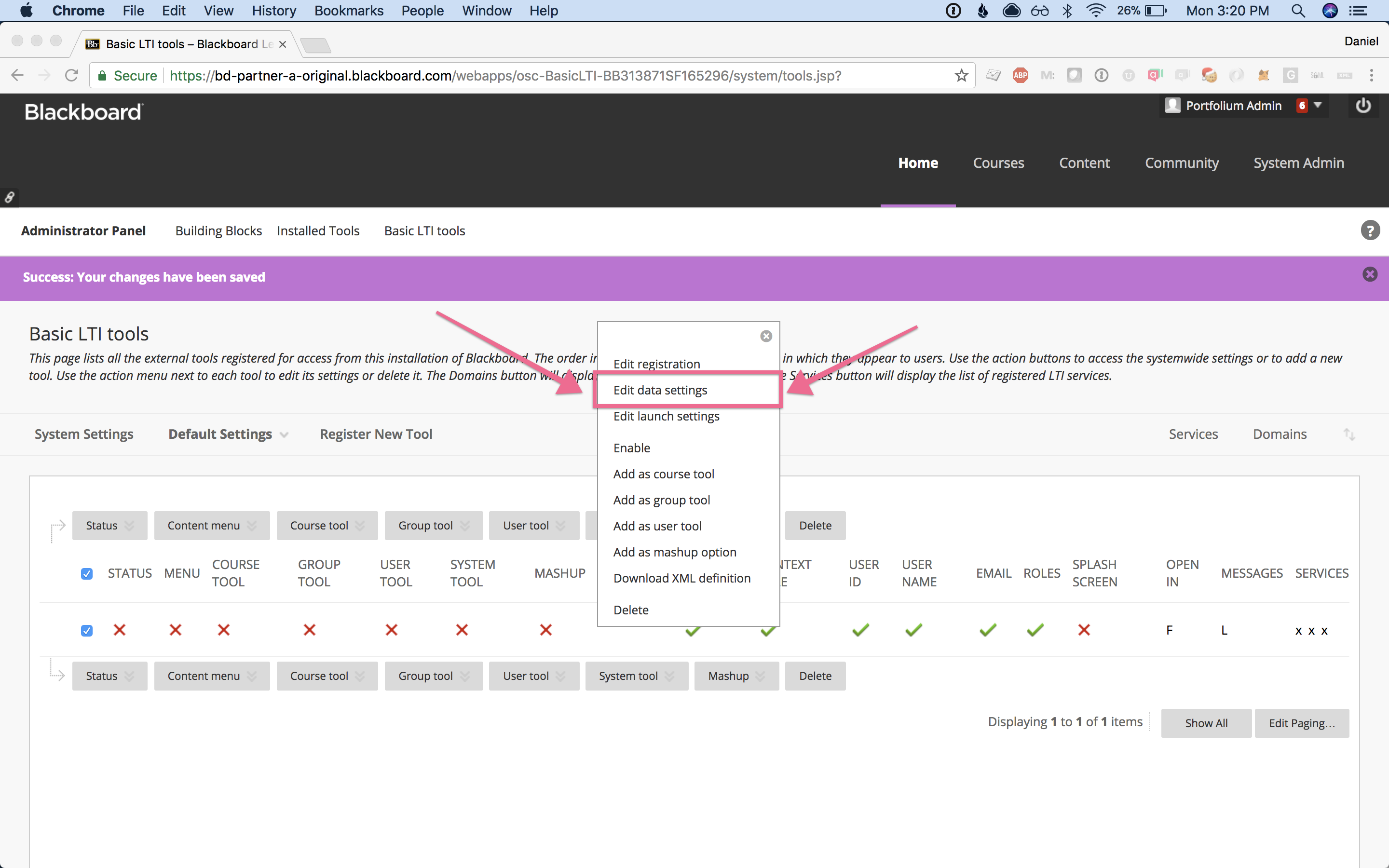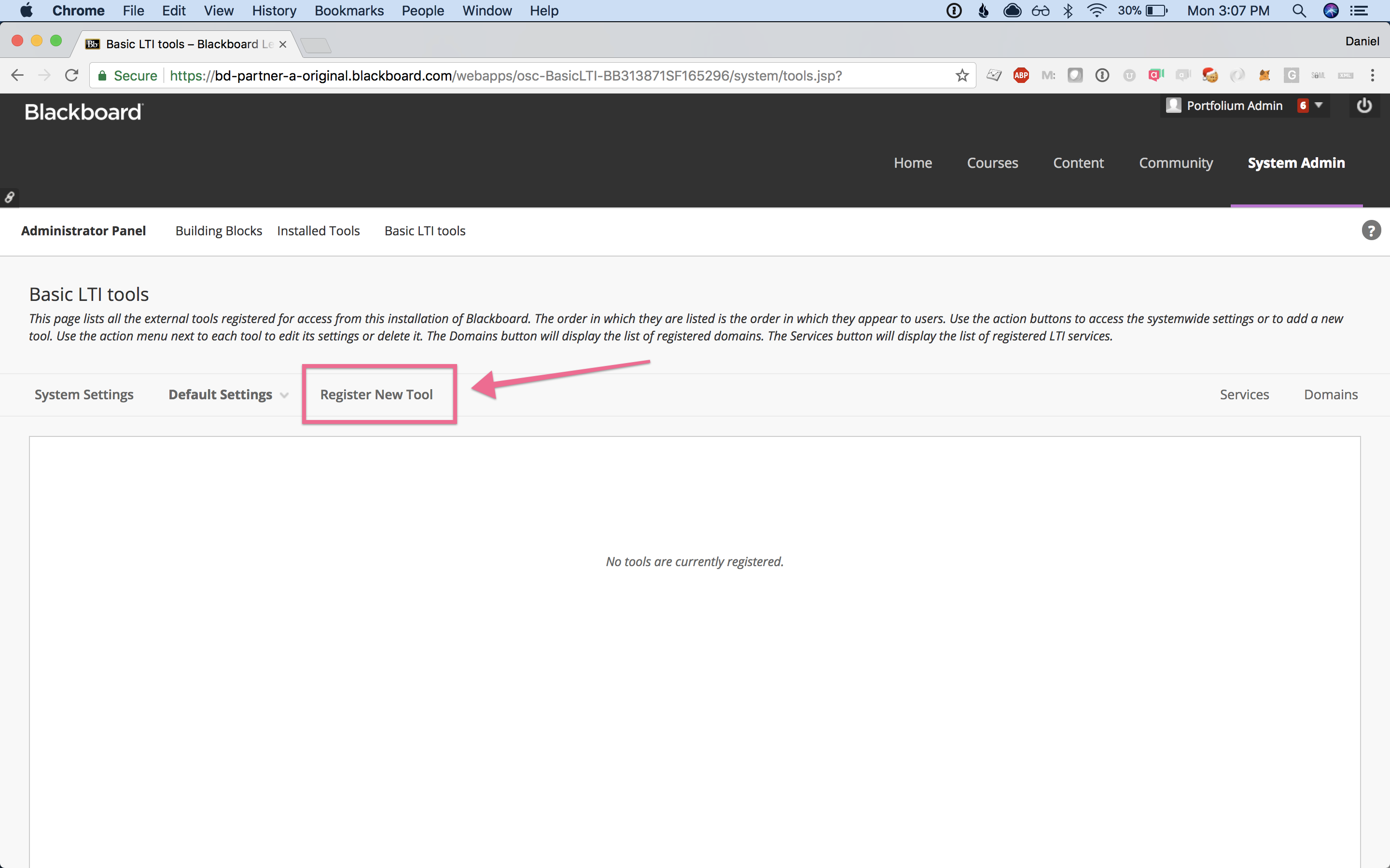 Step 4:Drag & drop the new Portfolium tool link to the position you want it displayed in the list.