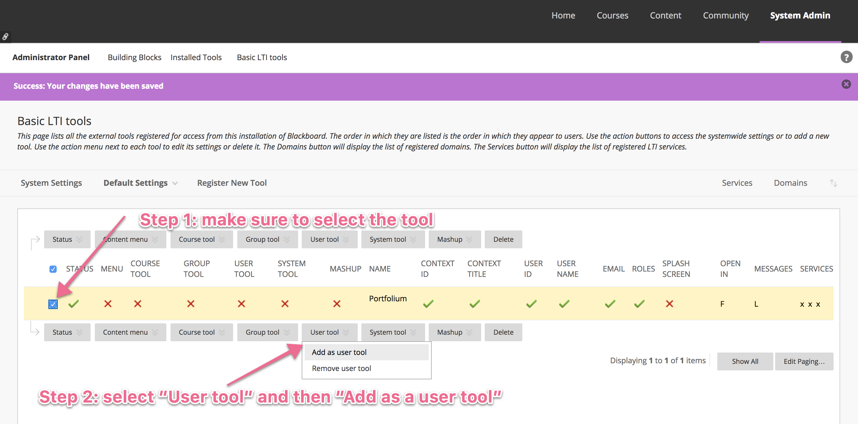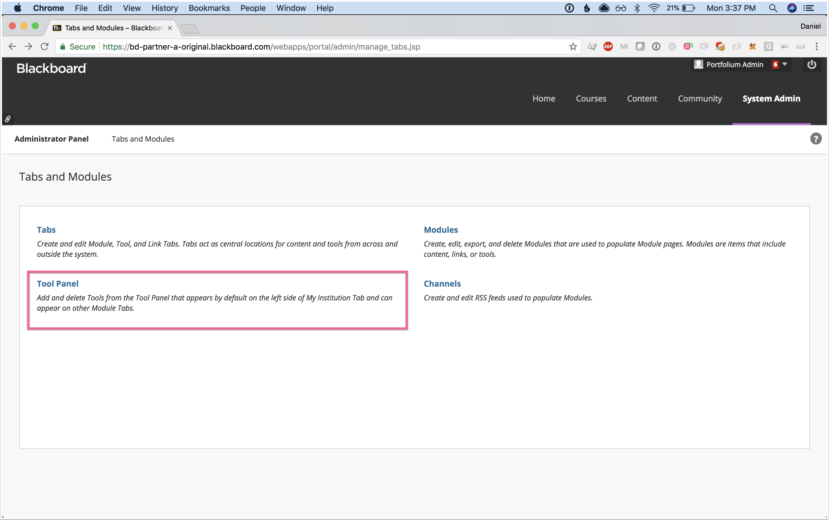 Step 1:Add the new tool(System Admin → Communities (section) → Tabs and Modules → Tool Panel)