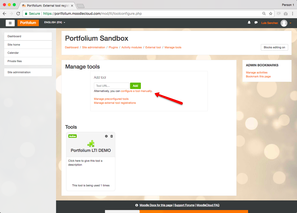 4. ON the “Manage tools” section, click on the “configure a tool manually” link