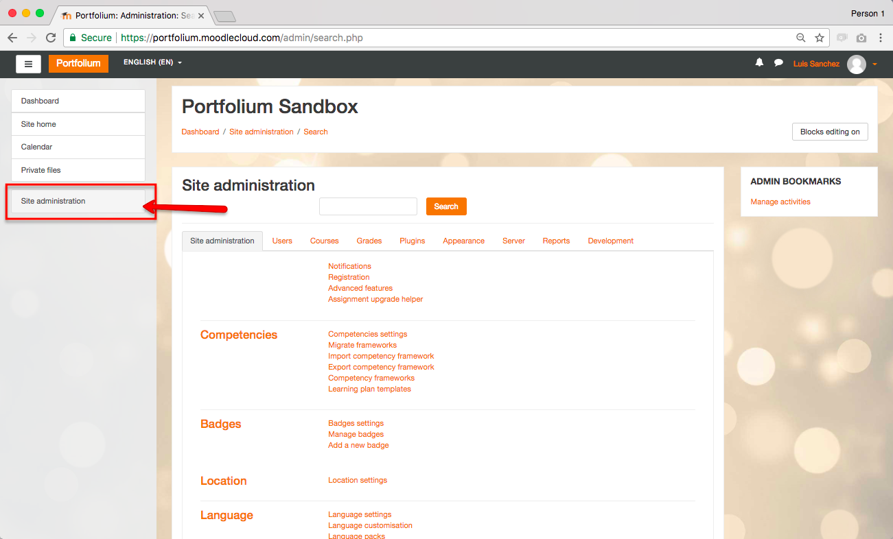 2. Click on the "Site administration" menu