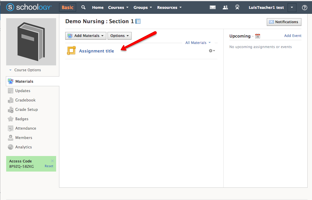 In Schoology, you will access the EDU Platform, by going to the “Course” and “Assignment” you would like to assess.