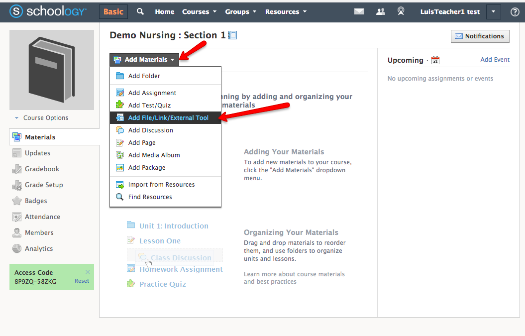 You will first be prompted to link to your course.You'll see : 1. Link to a course (and a list of those courses you can link to)