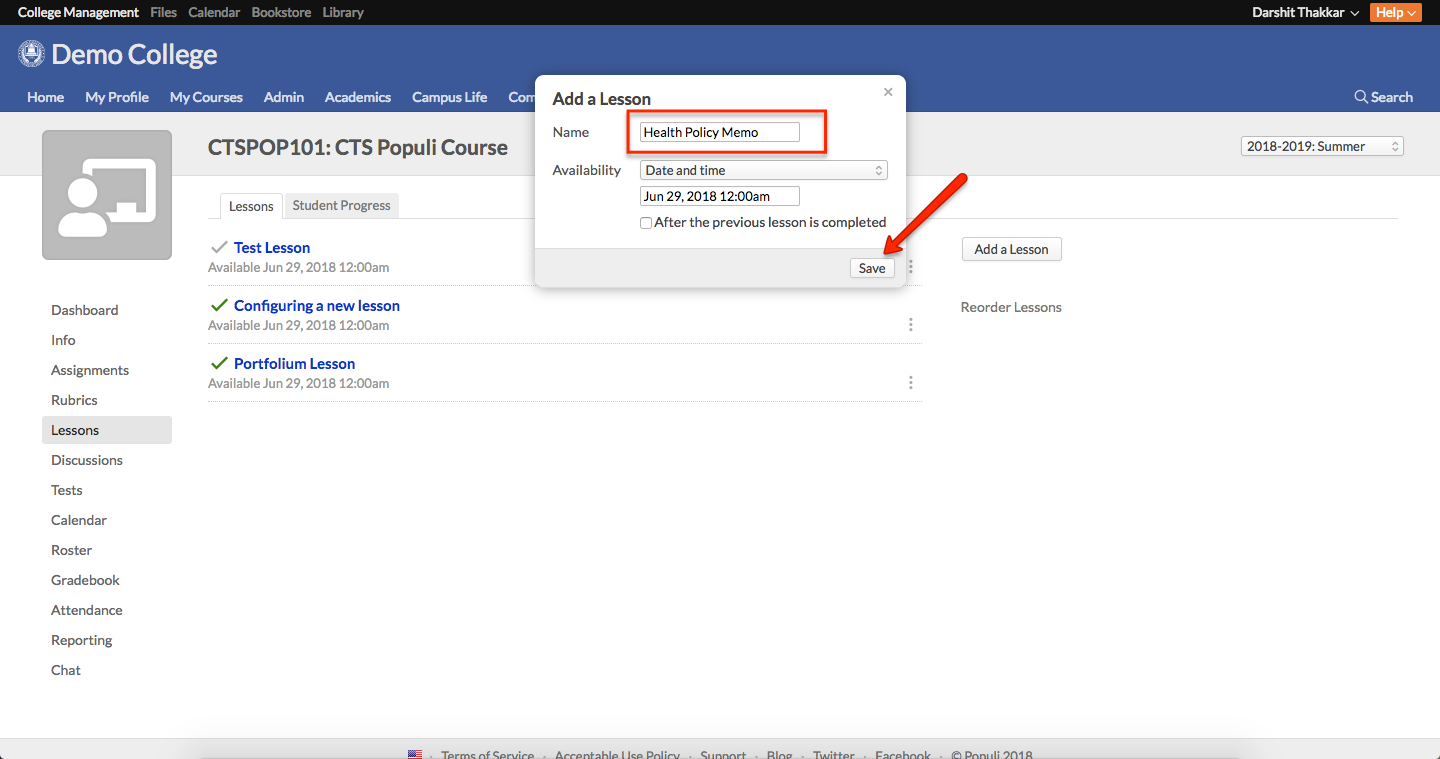 3. Click 'Add a lesson'4. Add a 'Name' and 'Save'