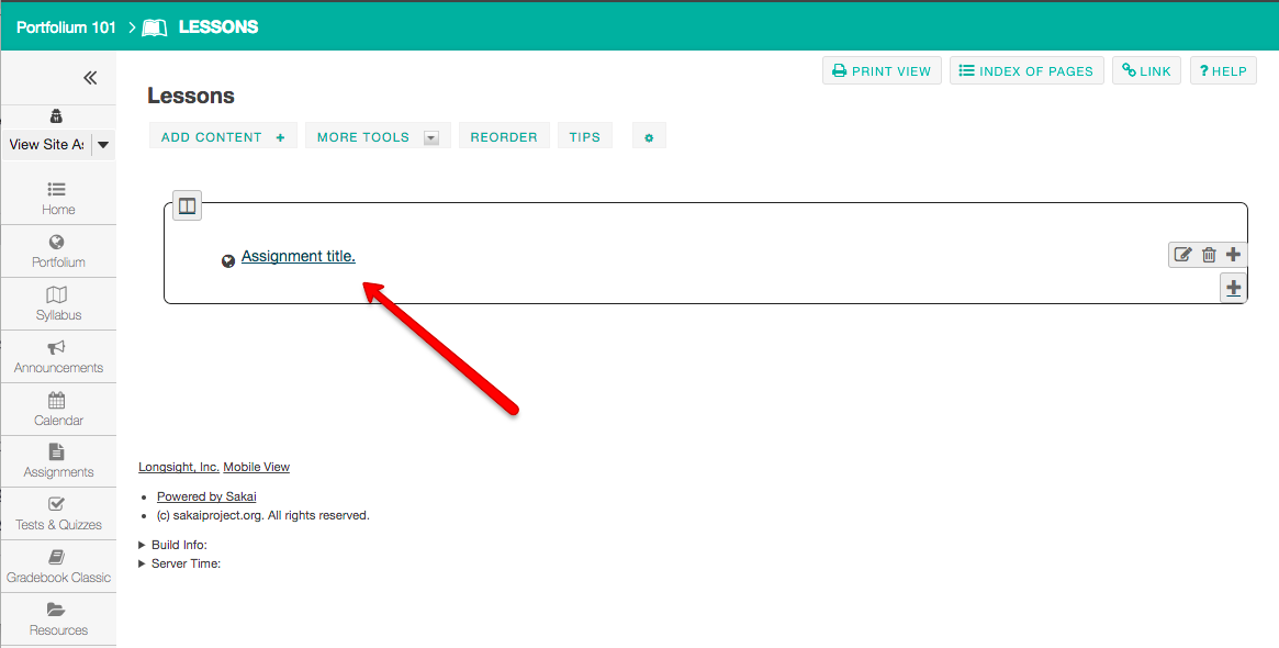 Once clicked, the student will be automatically logged into Portfolium and directed to the “Assignment Detail Page”.