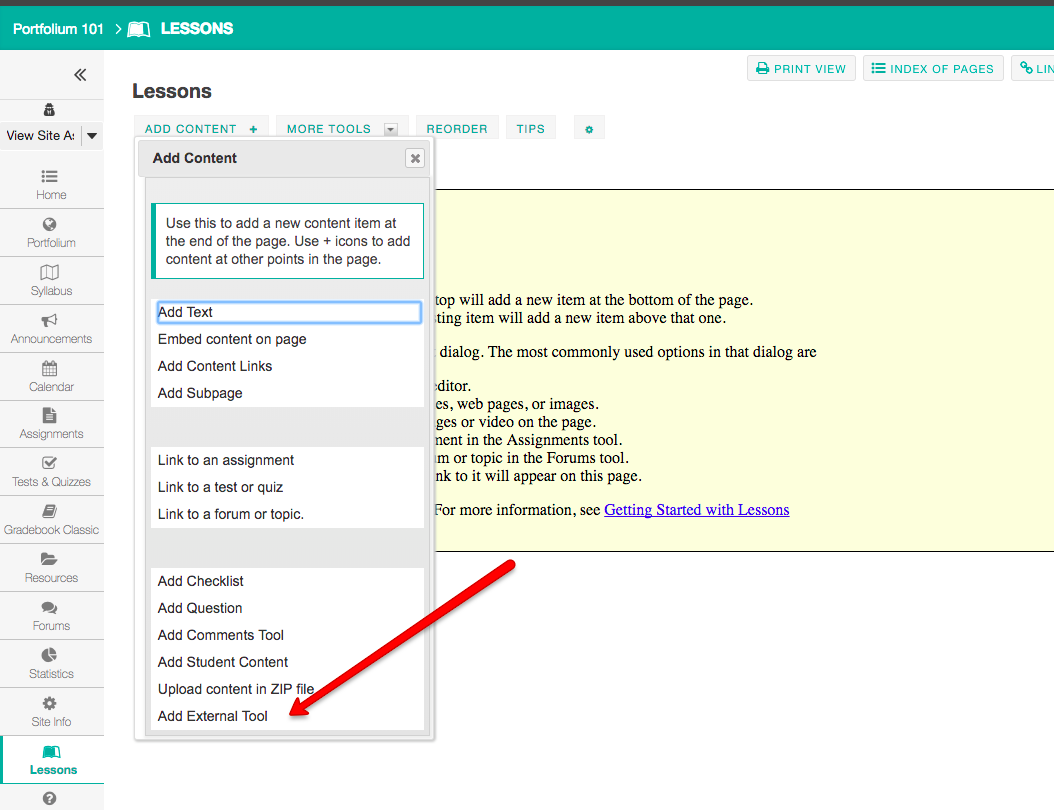 After your LMS administrator sets up the Portfolium LTI application, You will then have access to create new assignments.