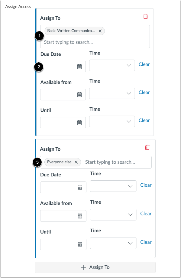 - When an individual section is added to an assignment, the Everyone option changes to Everyone Else.
