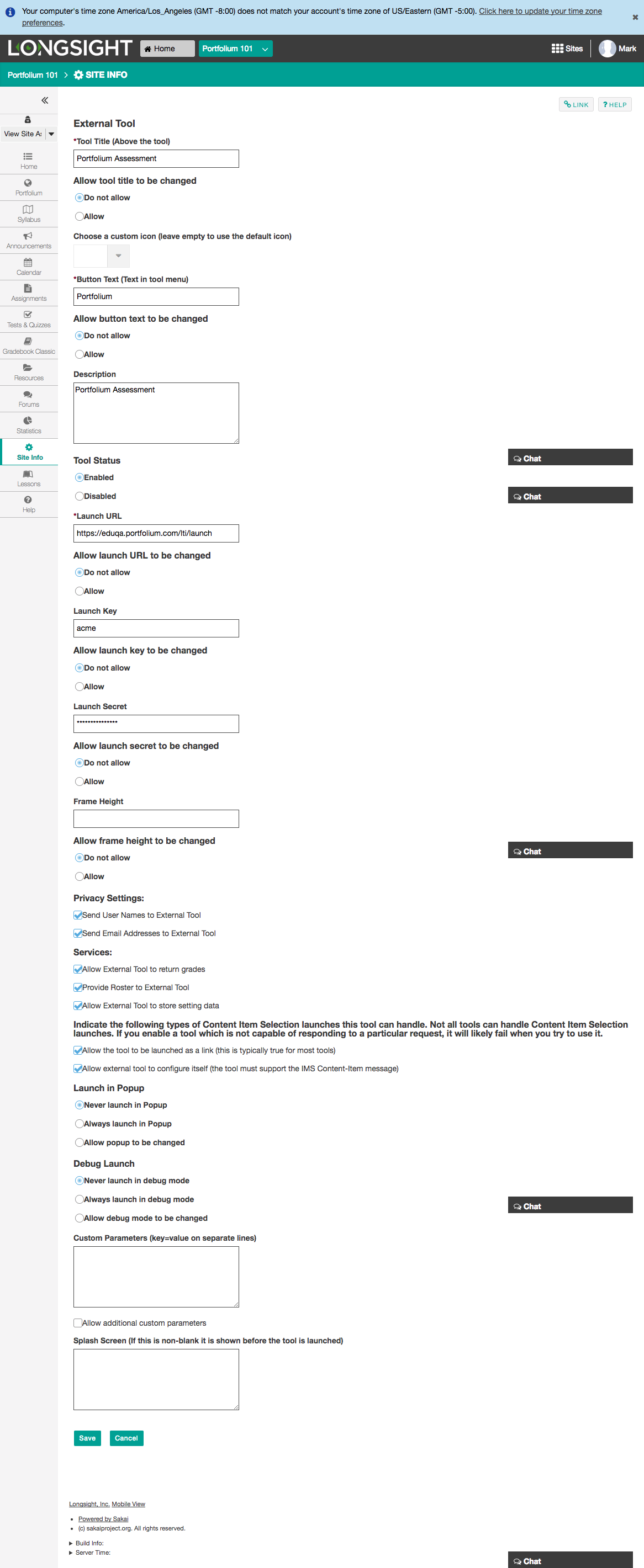 - Launch URL: https://edu.portfolium.com/lti/launch